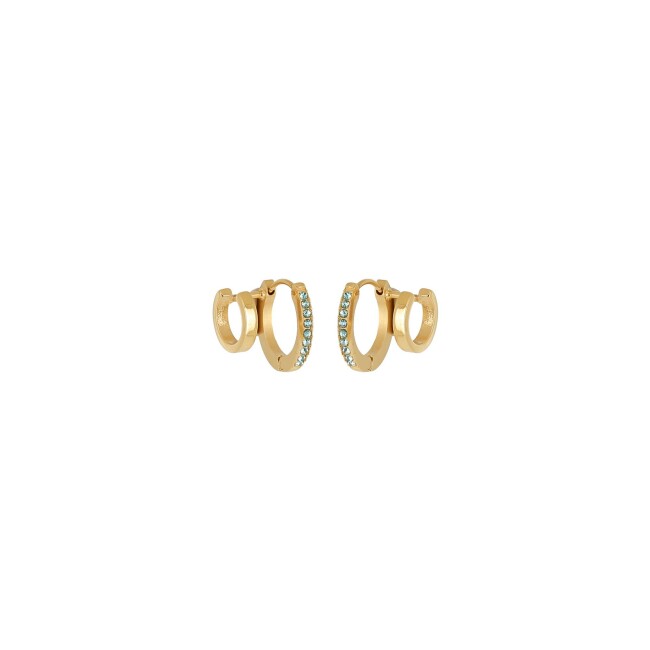 Mini boucles d’oreilles Zag en acier doré et oxydes de zirconium bleu