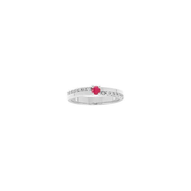 Bague en argent rhodié, rubis et topazes blanches, taille 54