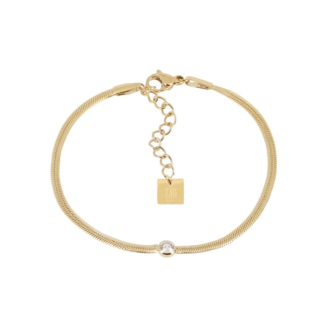 Bracelet Zag Adamo en acier doré et oxyde de zirconium, Blanc