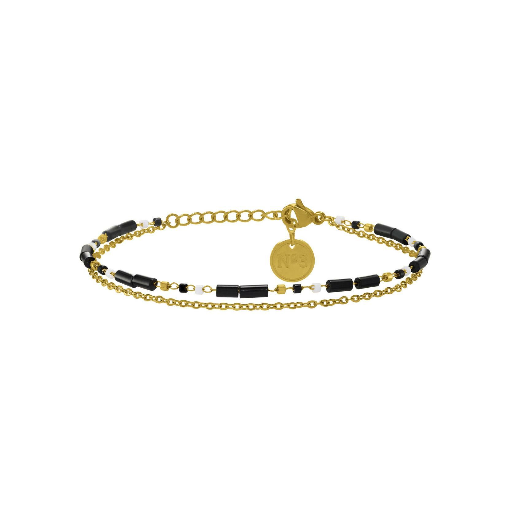Bracelet N°3 Bijoux en acier doré, agate noire, pierres Miyuki noires, dorées et blanches