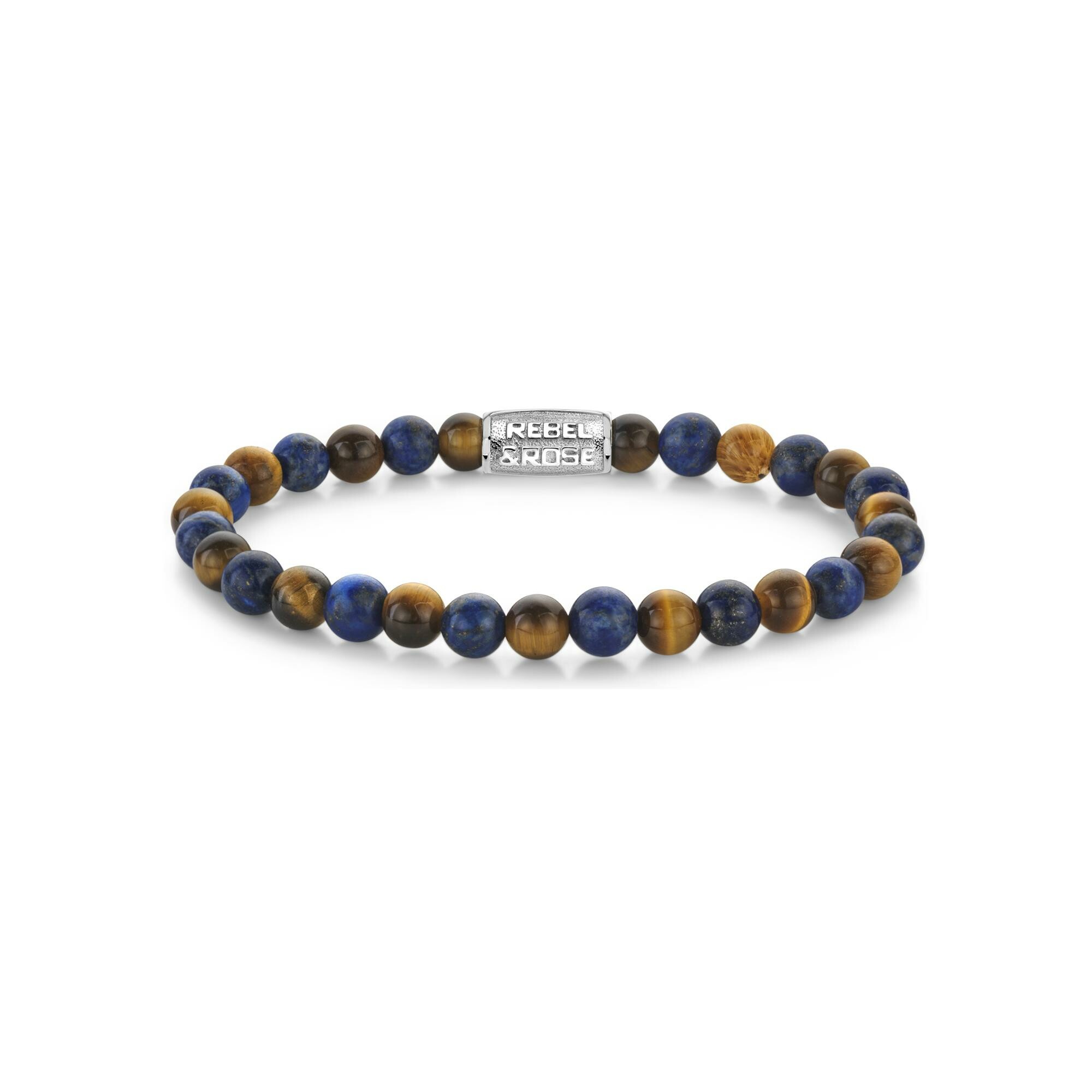 Bracelet Rebel & Rose Stones Only en acier, ?il de tigre jaune et lapis lazuli, taille M