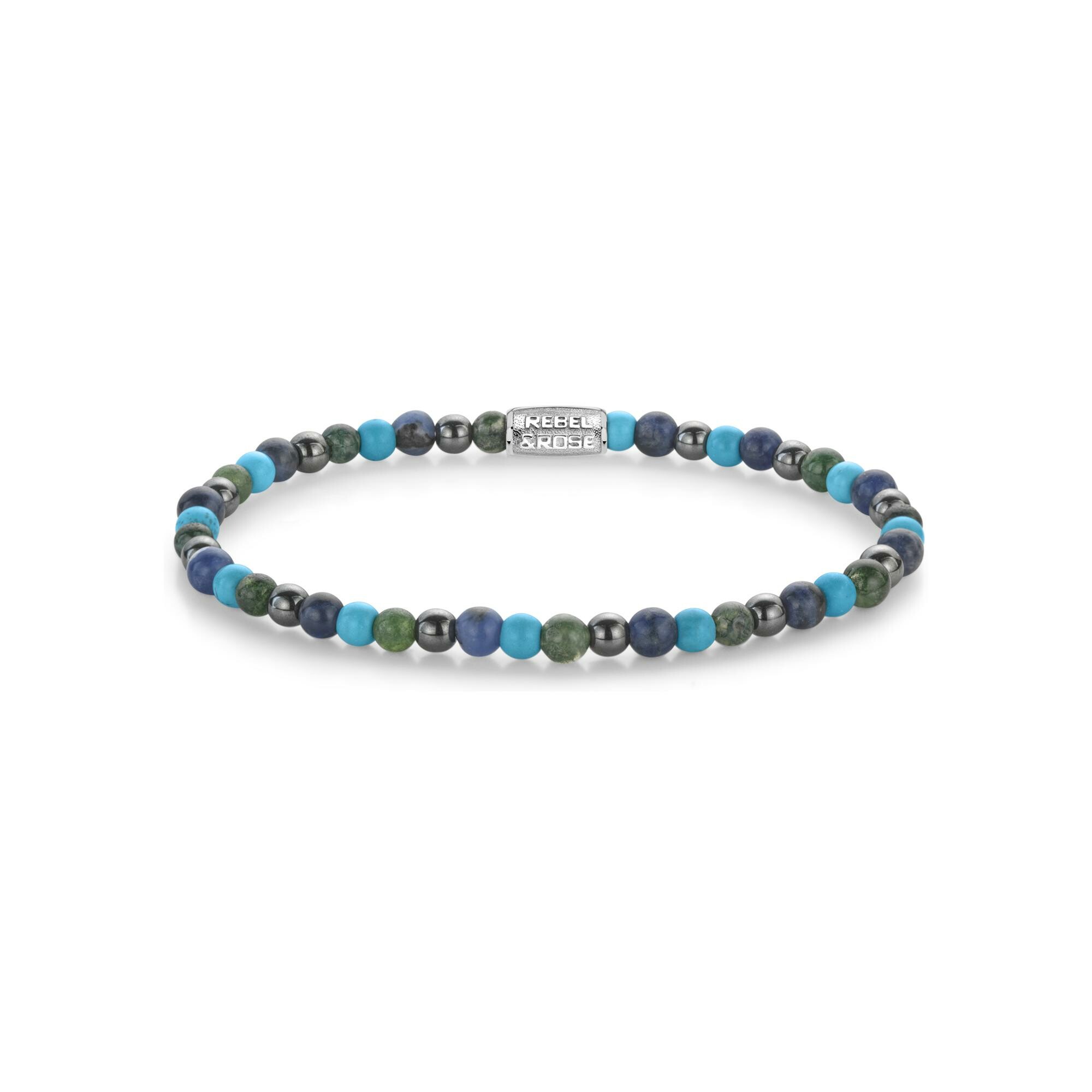 Bracelet Rebel & Rose Stones Only en acier, turquoise de synth?se, rhyolite, sodalite bleue et h?matite grise, taille M