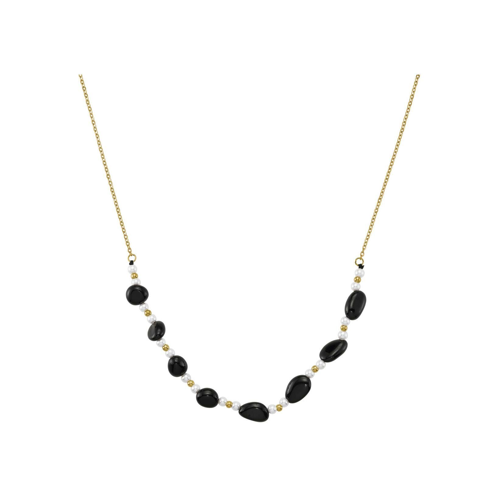 Collier N°3 Bijoux en acier doré, agate noire et perles de coquillage