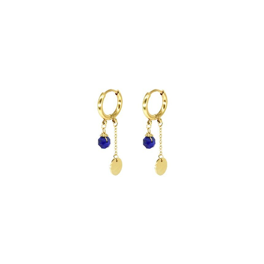 Mini boucles d’oreilles Zag en acier doré et lapis lazuli